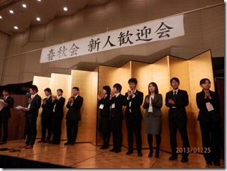 最後になりましたが、誠にお忙しい中、我々新入会員のために、素晴らしい歓迎会を開催して下さり、本当にありがとうございました。新入会員一同、春秋会の一員として、積極的に活動に参加していく所存ですので、これからもご指導ご鞭撻のほど宜しくお願い申し上げます。