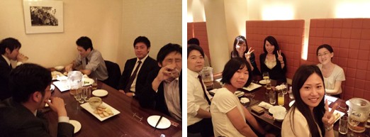 去る5月30日(金)、若手会(57期~66期)の懇親会が開催されました!総勢23名の先生方が駆け付けてくださり、会は終始大盛況♪写真をご覧になってのとおり、みなさんの心の底からの笑顔がその楽しさを物語っています!若干1名、物思いにふけておられる先生もいらっしゃいますが(笑)。気さくにお話ができる先生方が多いので、仕事のことからプライベートなことまで、突っ込んだお話も簡単に聞けてしまうところがおもしろいですよね♪沢山の諸先輩方と気さくにお話ができる心地良い空間でした。