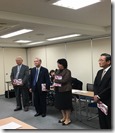 社会保険労務士の武田かおり先生と,アパレル系デザイン会社の平有子社長を講師に迎え,テレワークを活用したワークライフバランスの研修が開催されました。はじめに,山西幹事長からご挨拶いただいたのち,武田かおり先生からテレワークの概要,効果,導入方法などについて講演いただきました。武田かおり先生は,テレワーク相談センター大阪を運営し,厚労省・総務省主催のテレワークセミナー講師を務めておられます。講演では,パワーポイントで多くの資料や数字を読み解いていただき,とても分かりやすく勉強になりました。