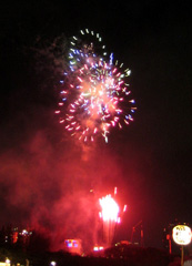 大阪拘置所前を通り過ぎたあたりで、船が反転。反転して間もなく、花火が打ち上げられ始めました。