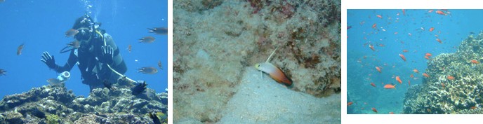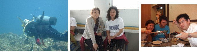 ダイビングショップ「バタフライ」さんの御世話になって、部活動の開始。 多希子さんは体験ダイビング、吉岡さんはライセンス取得コース(つまり、この石垣島でライセンスを取ってしまう目論見です。)、その他3名はライセンスを既に持っているので、ファンダイビングでした。