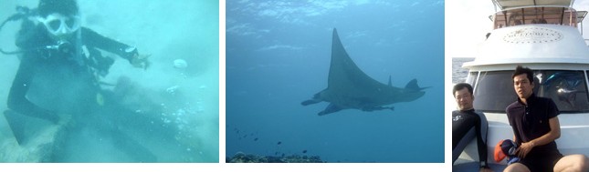 2本目は、ついにマンタスクランブル。先に帰ってしまったみんなには悪いのですが、きっちりマンタを拝んで来ました。大きくて、優雅です。宇宙船のようにも見えます。 3本目も無事終了。