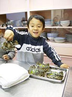 3 以上の三品を午前10時30分から、約2時間かけて作りました。意外に時間がかかったように見えますが、一品ずつ先生の説明を聞いてから調理に取り掛かりますから、実際の調理時間はそれほど長くありません。調理中は皆さん真剣なのですが、何故か、ワインや紹興酒が振る舞われ、飲みながらの料理となりました。やはり、普段料理をしない人は、その様な楽しみを求めてしまうものなのでしょうか。とにかく、楽しく和気あいあいと進み、あっという間の2時間でした。子ども達も、初対面であったため当初は微妙な距離感があったのですが、2時間後にはすっかり仲良くなりました。最後は「そんなの関係ねえ」だの「オッパッピー」だので大盛り上がりでした(料理とは無関係ですがご容赦下さい。)。